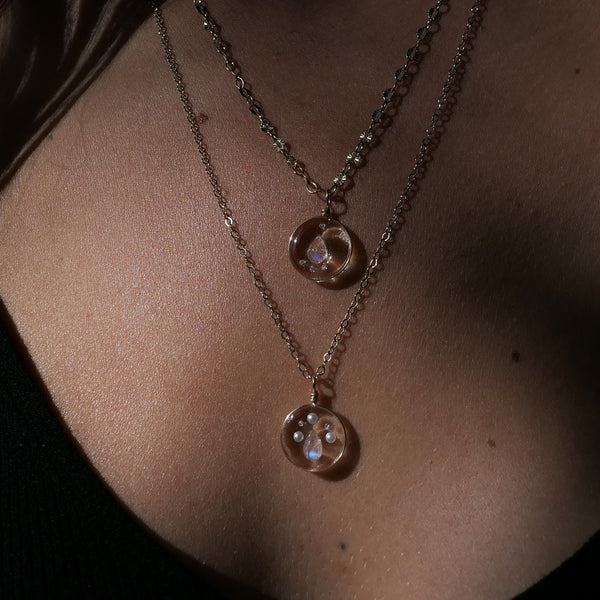 14K GOLD FILLED WRAPPED RESIN PENDANT WITH FLOATING AUSTRALIAN OPAL & DIAMONDS.