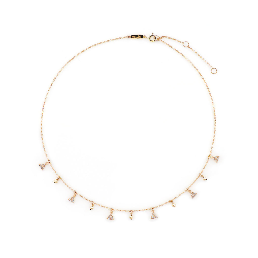 18K SOLID GOLD NECKLACE WITH PAVE TRIANGLE & NATURAL GULF PEARLS.